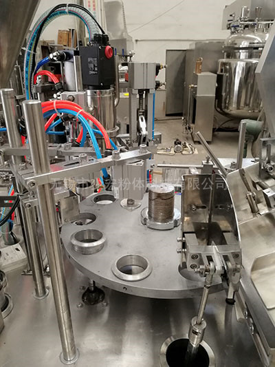 50全自動(dòng)復(fù)合管灌裝封尾機(jī)采用全不銹鋼制作,工作過程采用按扭控制;人工上管,8工位自動(dòng)回轉(zhuǎn),定量灌裝、自動(dòng)切斷、加熱封尾、切尾、成品退出。所有工作采用高精度氣缸全行程,灌裝量調(diào)節(jié)方便,灌裝速度可調(diào)。該機(jī)實(shí)用于各種規(guī)格復(fù)合軟管的灌裝、封尾、日期打印、切尾。封尾外形美觀整齊,封合牢固,計(jì)量精度高,穩(wěn)定性好。根據(jù)物料不同可選配:料斗加溫系統(tǒng)、防拉絲灌裝頭。